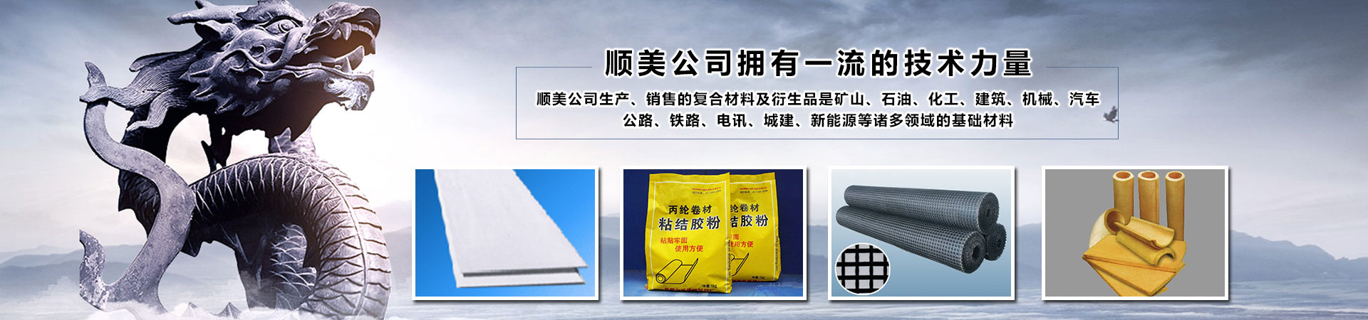 新疆順美新材料有限公司,是成都順美國際貿(mào)易有限公司駐新疆的分公司。順美國際貿(mào)易有限公司(以下簡(jiǎn)稱順美公司)成都總部成立于1998年,分公司成立于2008年。是一家科技型研發(fā)、生產(chǎn)及國內(nèi)國際貿(mào)易型企業(yè)。公司主要以研發(fā)、生產(chǎn)、銷售各種新材料、化工、建材、防水、防腐、防火、保溫材料、土工材料、橋梁加固材料及國際國內(nèi)貿(mào)易為主。公司下屬員工二百余人,并擁有一支具有高素質(zhì)從事新材料、化工、建材及國際貿(mào)易數(shù)十年經(jīng)驗(yàn)的研發(fā)、生產(chǎn)和銷售團(tuán)隊(duì)!順美公司擁有好的技術(shù)力量,嚴(yán)格的質(zhì)量檢驗(yàn)標(biāo)準(zhǔn)和先進(jìn)的生產(chǎn)設(shè)備,實(shí)行科學(xué)化的管理,產(chǎn)品擁有自主知識(shí)產(chǎn)權(quán),涵蓋多項(xiàng)國家專利,并嚴(yán)格按照標(biāo)準(zhǔn)進(jìn)行生產(chǎn)、加工和銷售。順美公司生產(chǎn)、銷售的復(fù)合材料及衍生品是礦山、石油、化工、建筑、機(jī)械、汽車、公路、鐵路、電訊、城建、新能源等諸多領(lǐng)域的基礎(chǔ)材料。順美公司經(jīng)過多年的累積和發(fā)展,現(xiàn)已建立完善的研發(fā)、生產(chǎn)、銷售一條龍服務(wù)體系,在產(chǎn)業(yè)鏈銜接、技術(shù)、服務(wù)、物流、人才聚集等方面成效顯著...